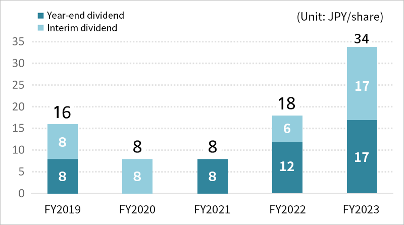 Yachiyo positions the return of profits to shareholders as one of its most important management issues, and strives to develop its business from a global perspective and improve corporate value.