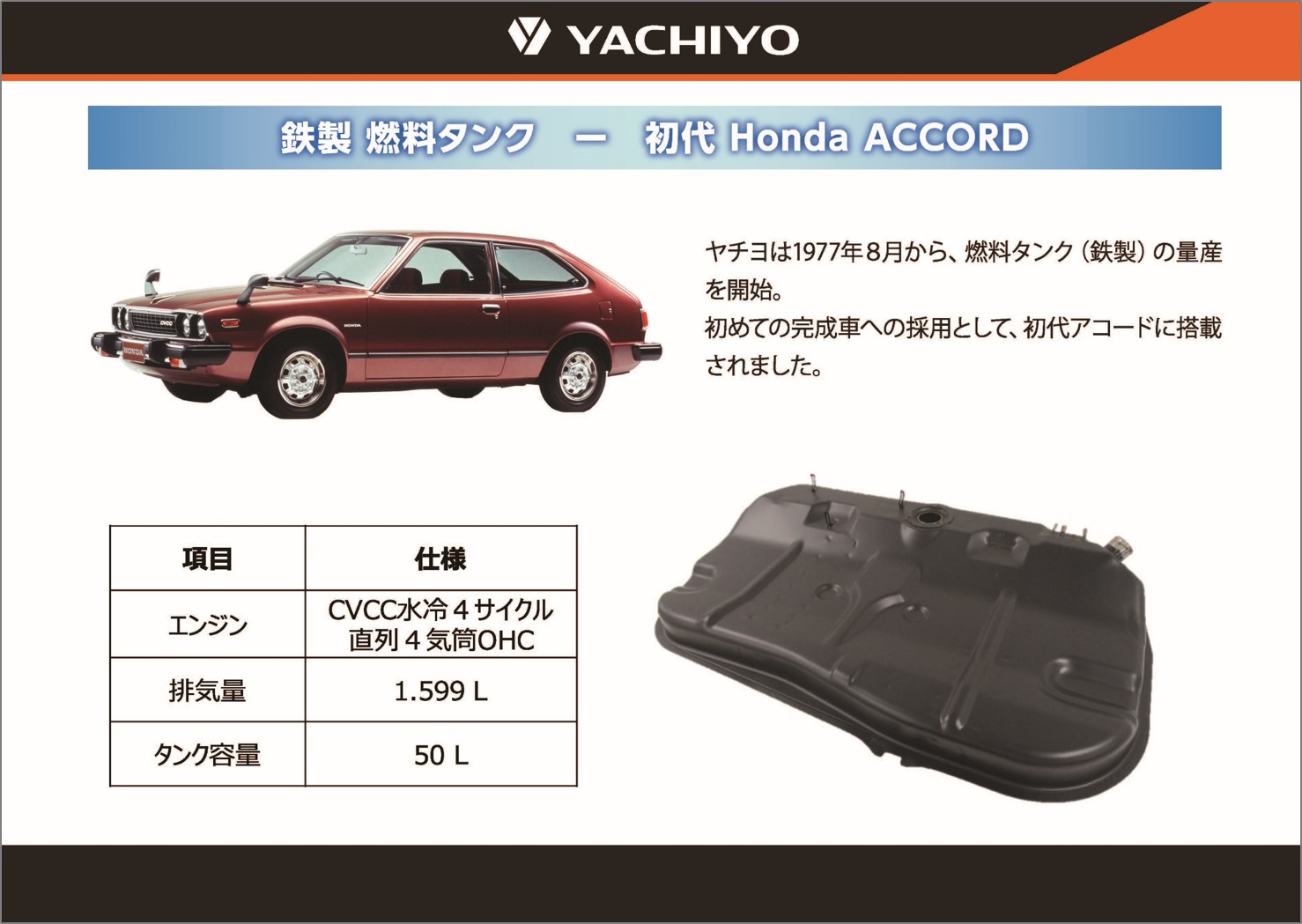 This is the first fuel tank that Yachiyo started mass producing. It was installed in Honda's first-generation Accord as its first use in a completed car.