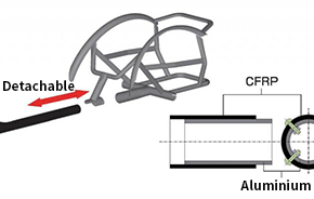 It has a split structure that connects the carbon main frame and seat frame with bolts, and can be changed according to the athlete's preference.