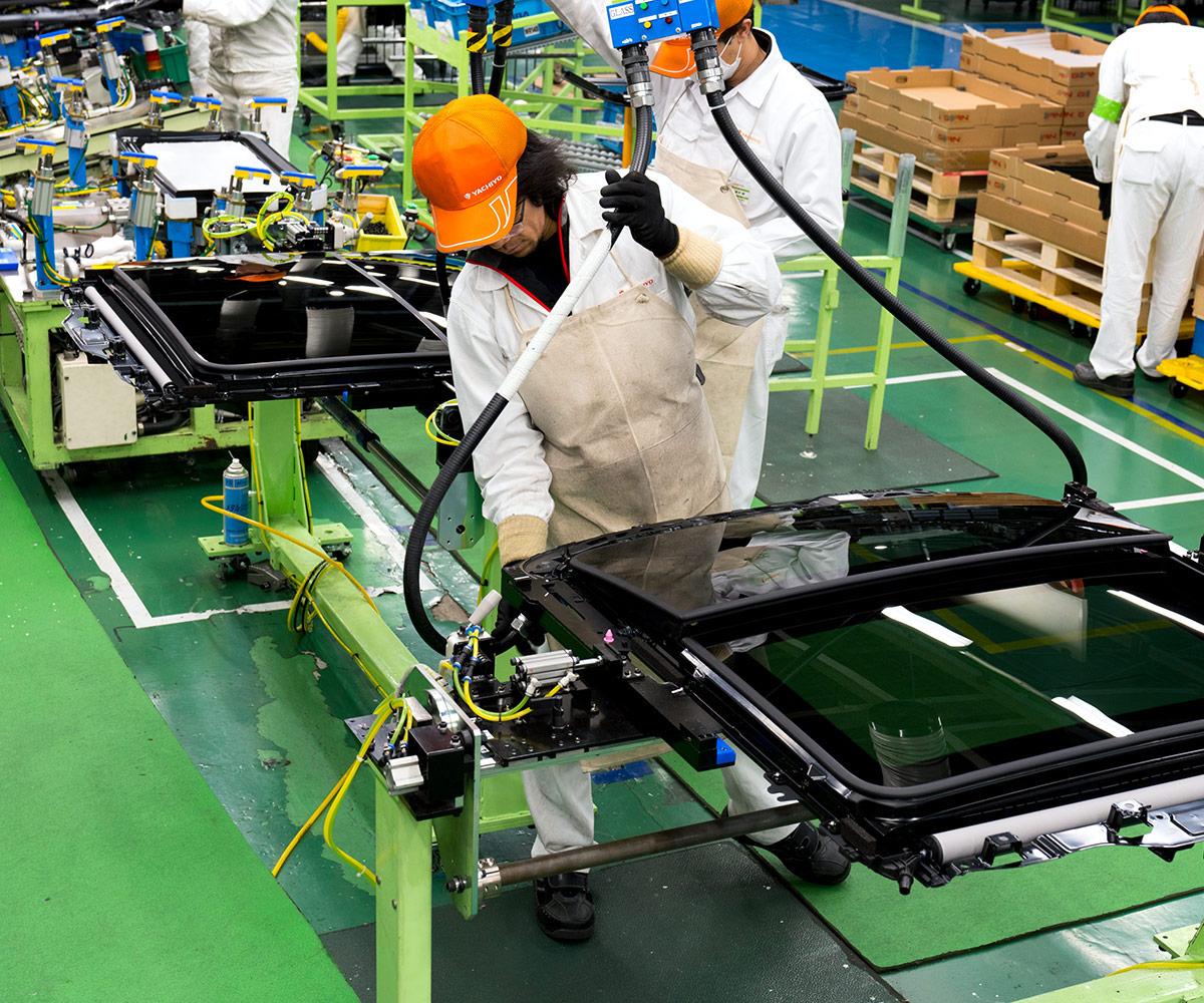Yachiyo always adheres to the design philosophy of ”lighter” and ”thinner” products, and responds to the needs of our customers by offering everything from standard sunroofs to large-opening panoramic sunroofs.